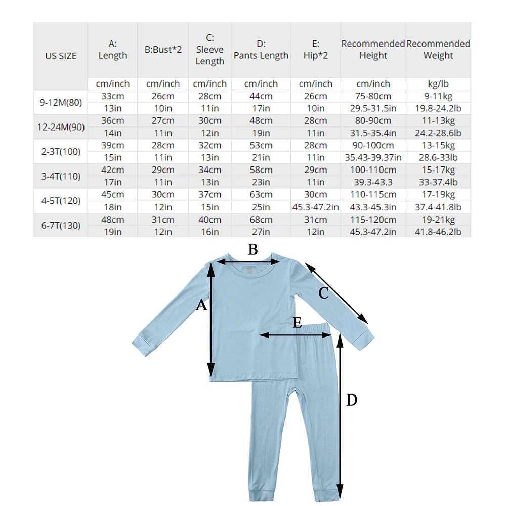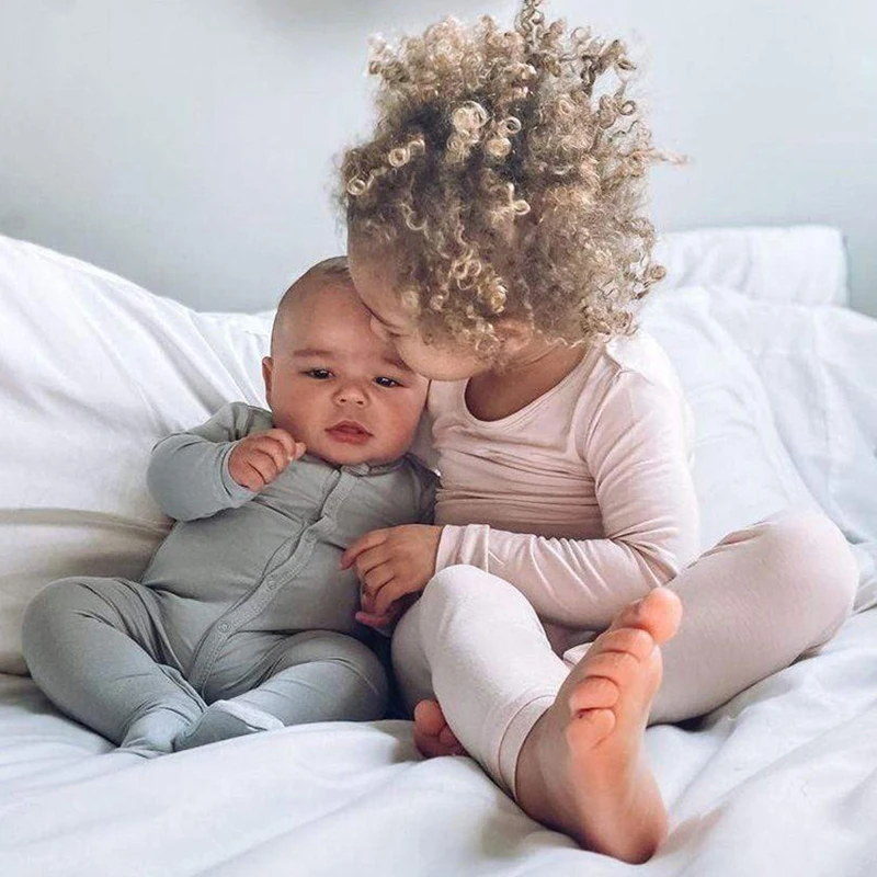 2023 Bamboo Fiber Toddler Kids Pajamas Clothes Solid Hight Elasticity Breathable Sleepwear Set For 9M-7T Boy Girl Loungewear
